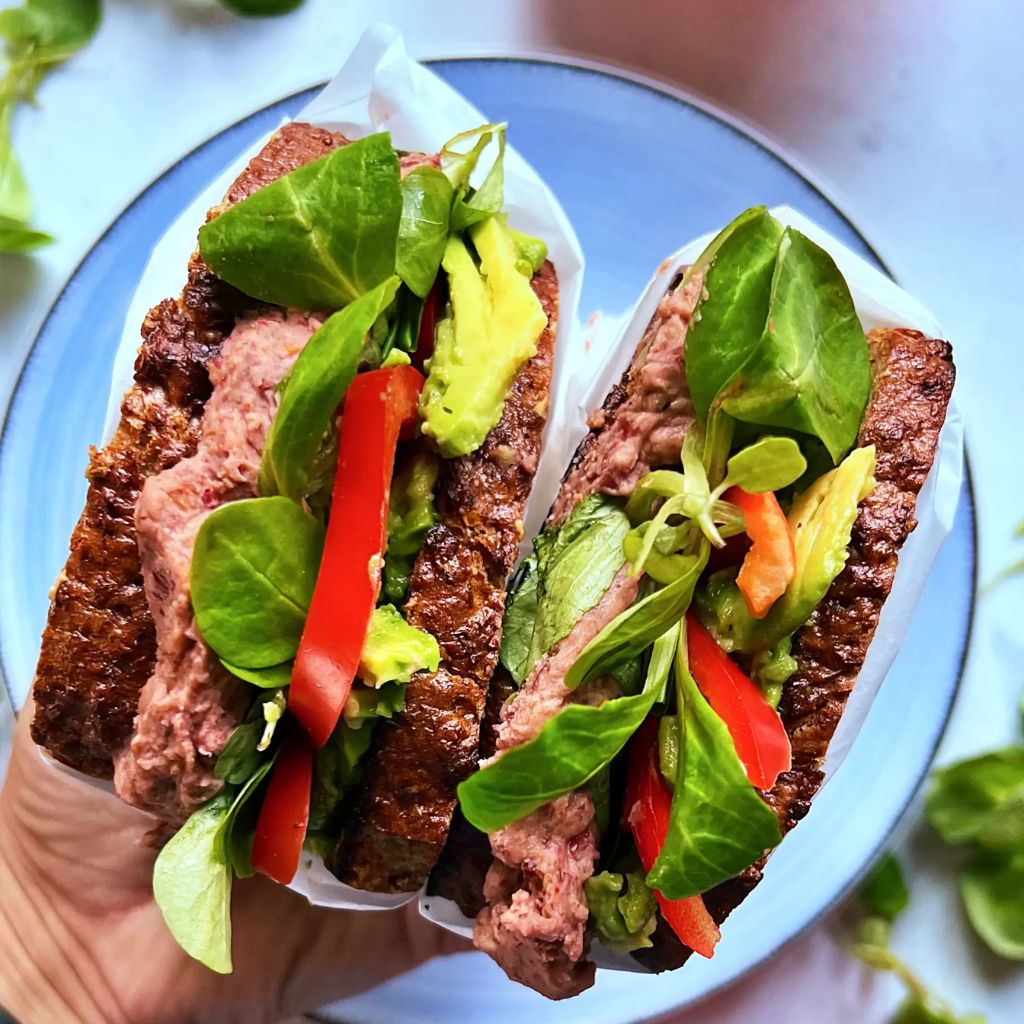 Kanapka z pastą z suszonych pomidorów, rukolą i mozzarellą