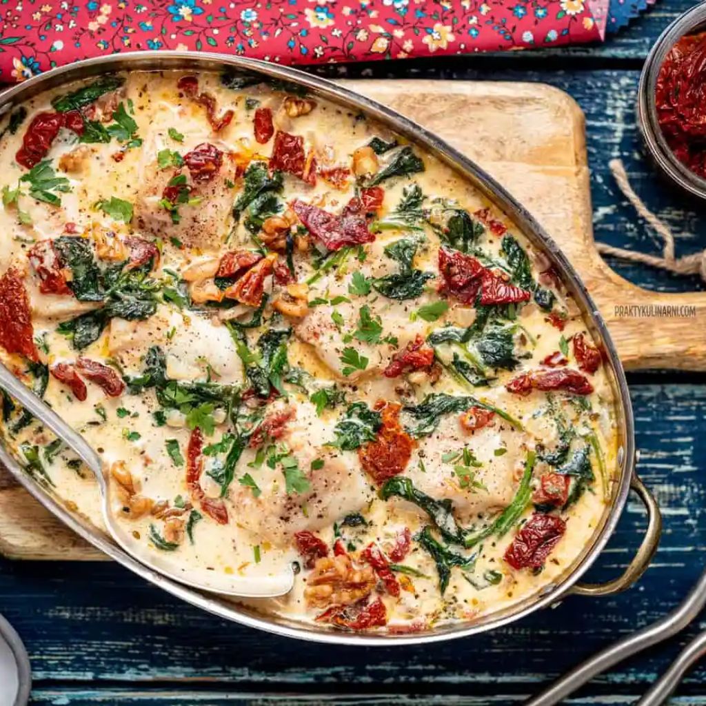 Ryba ze szpinakiem i suszonymi pomidorami