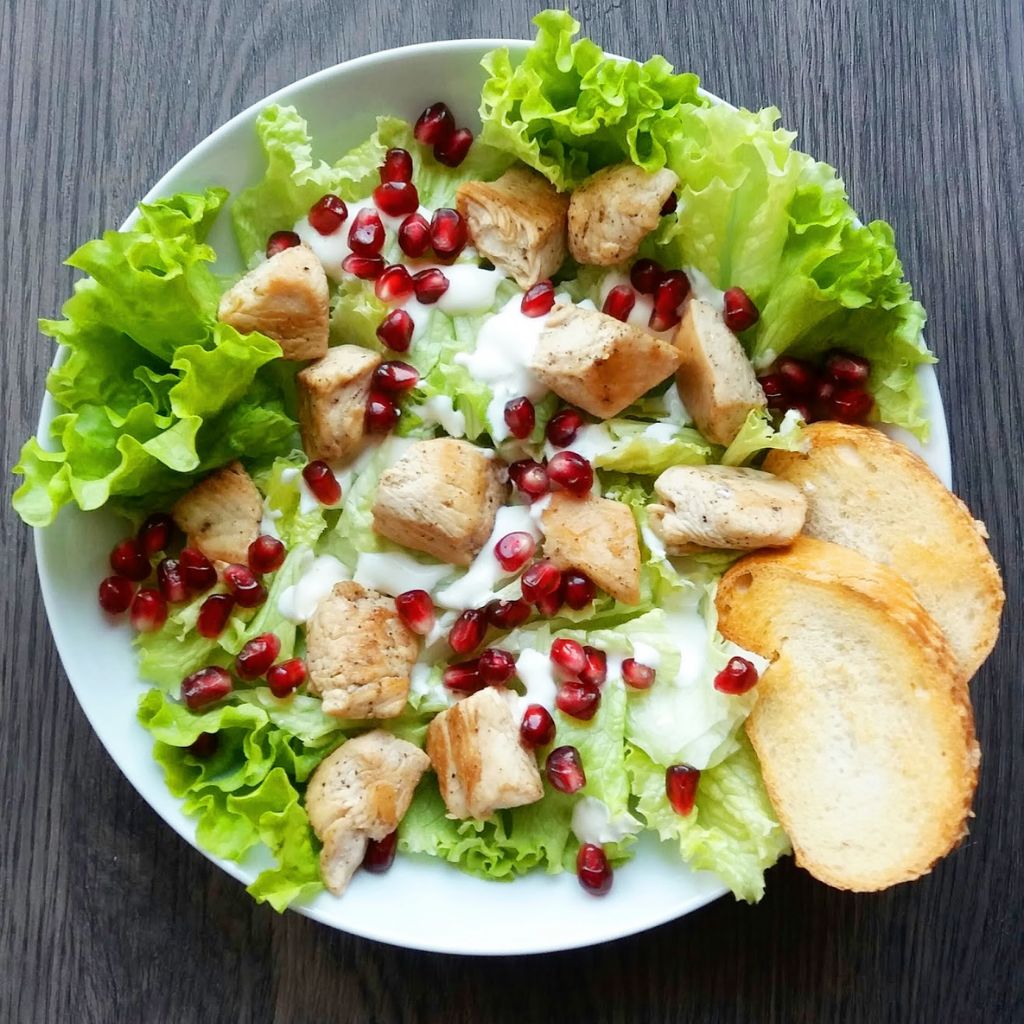 Sałatka z kurczakiem, awokado i pestkami granatu